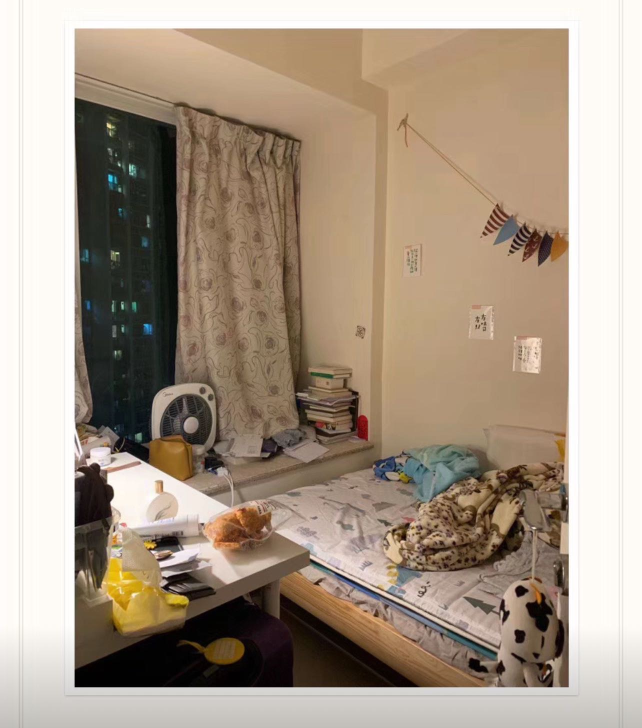 月租HK$6000,水电煤网费大家每月平分,客厅宽敞不住人,浴室与住另一间小房的姑娘共用。室友性格极好,作息规律,爱干净,日常时而做做饭,周末睡睡懒觉。