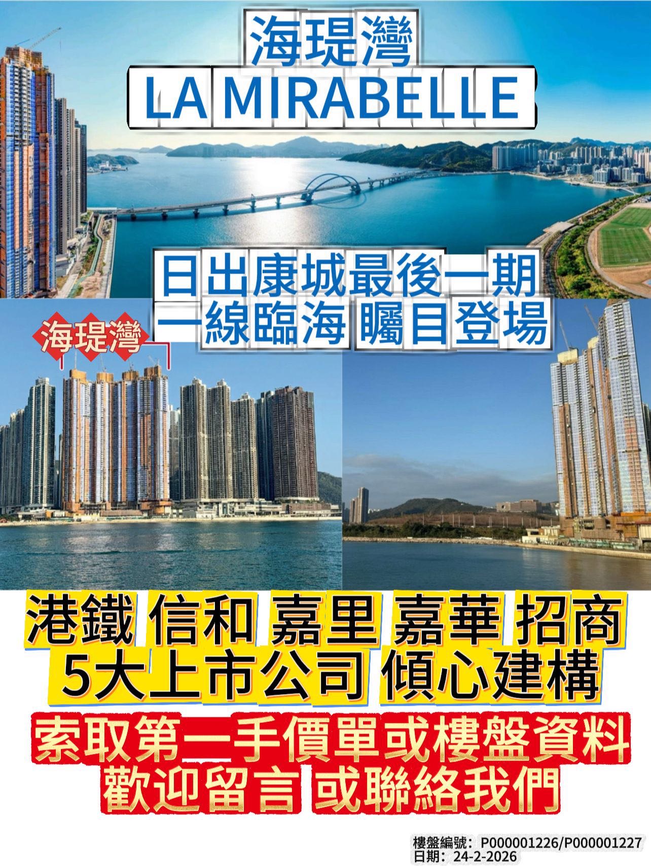 将军澳线,康城地铁站,新盘,小学95所校网,一期1266伙有一房二房三房及少部分四房和特色单位 有小孩子的宝宝妈妈首选