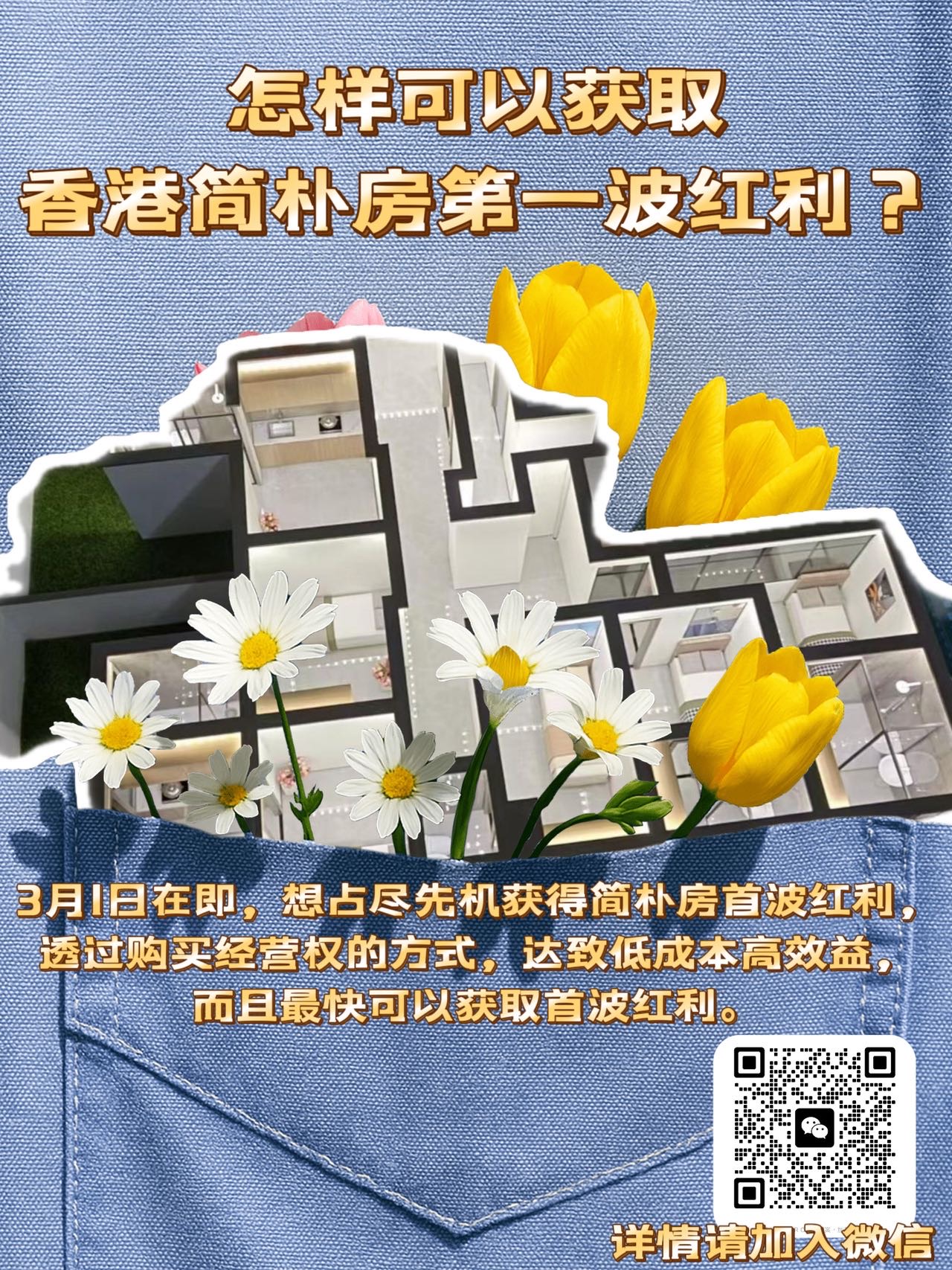怎樣可以獲取香港簡樸房第一個紅利? 3月1日在即,想佔盡先機獲得簡樸房首波紅利,透過購買經營權的方式,達致低成本高效益,而且最快可以獲取首波紅利。