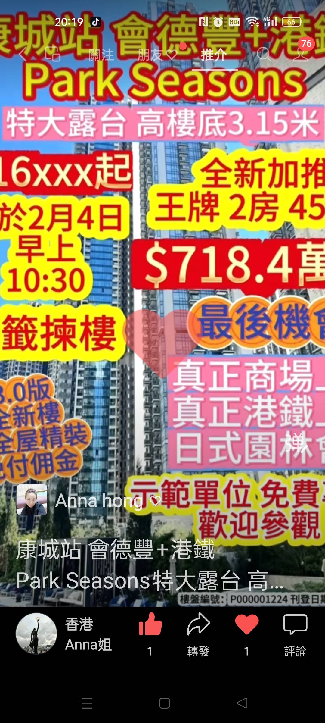 康城站 會德豐+港鐵 Park Seasons特大露台 高樓底3.15米 @16xxx起 全新加推 [爱心][爱心][爱心][爱心] 訂於2月4日 王牌2房451 10:30早上$718.4萬起 抽籤揀樓 最後機會 3.0版 真正商場上蓋 [爱心][爱心][爱心][爱心] 全