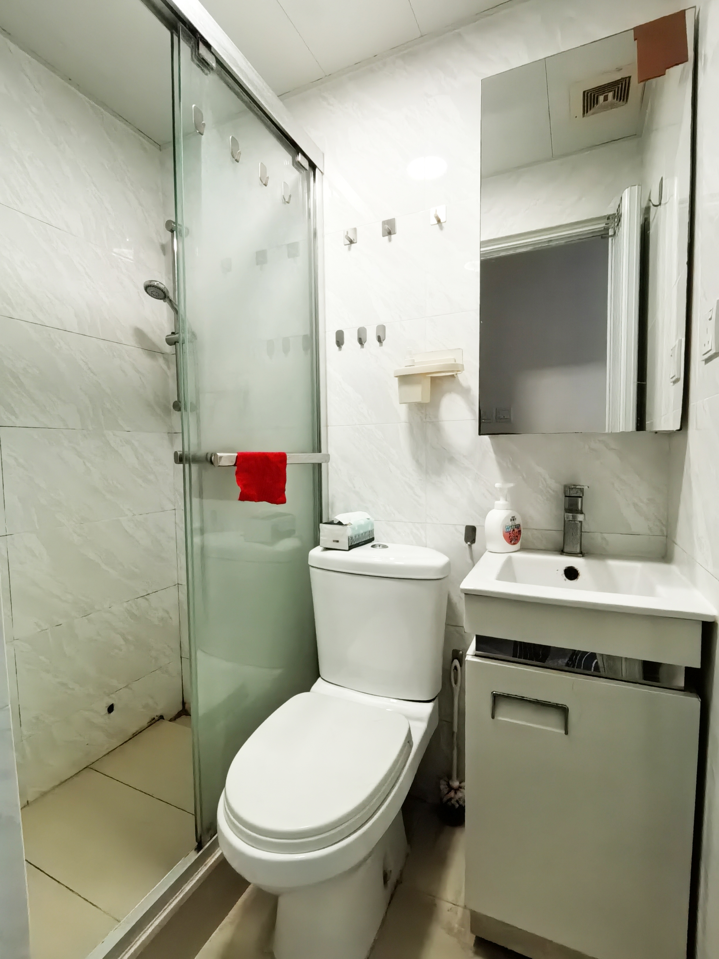 房屋:电梯九楼、朝南大窗户、采光通风良好,无蟑螂老鼠,卫生间干湿分离,有吧台和油烟机可简单烹饪