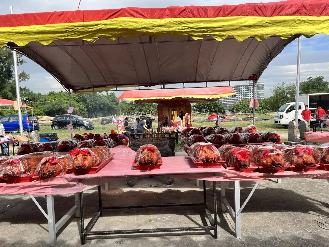 万万没想到拜神仪式会有品尝烧猪的环节,我还以为这些只是不能吃的贡品。