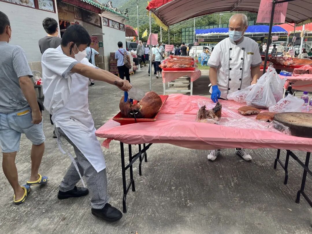 上香结束就来到了我非常期待的环节:品尝烧猪!