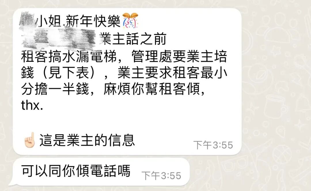 原来,房东得知我要退租,便联系中介,要求我分担两年前管理处要他赔偿的电梯维修费。