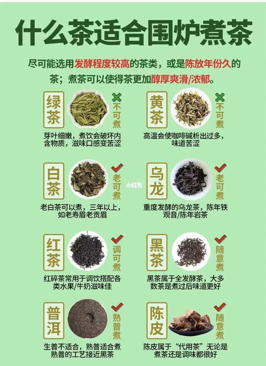 一般老白茶、红茶、普洱茶、黑茶都适合用来煮。