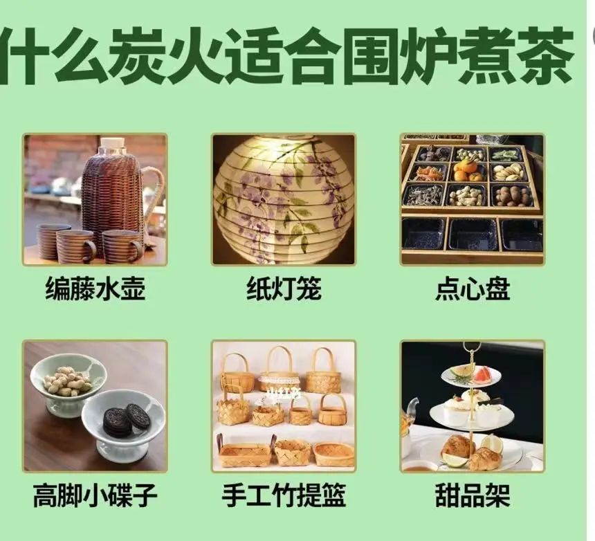 简单清单:炉具一套,一般都赠送木炭;九宫格小食盘或者下午茶架子。