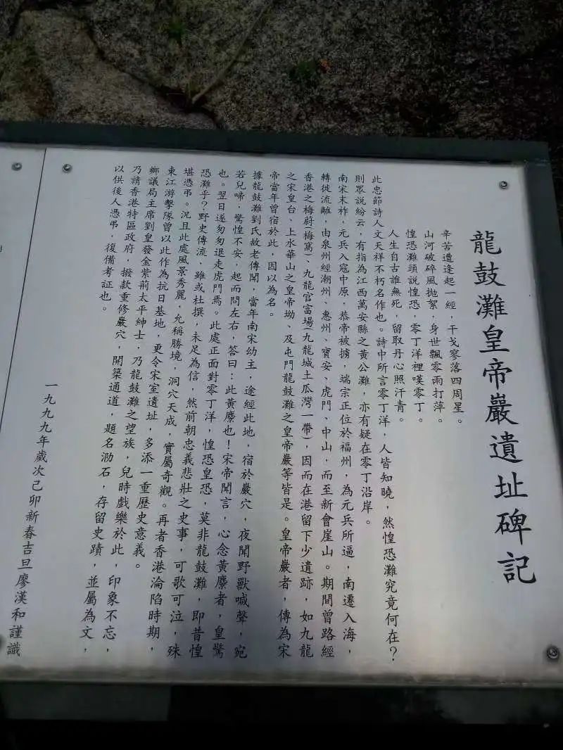 相传宋帝为逃避蒙古的追兵,曾藏匿于屯门龙鼓滩后山上的一个山洞中,这里现在被称为“皇帝岩”。