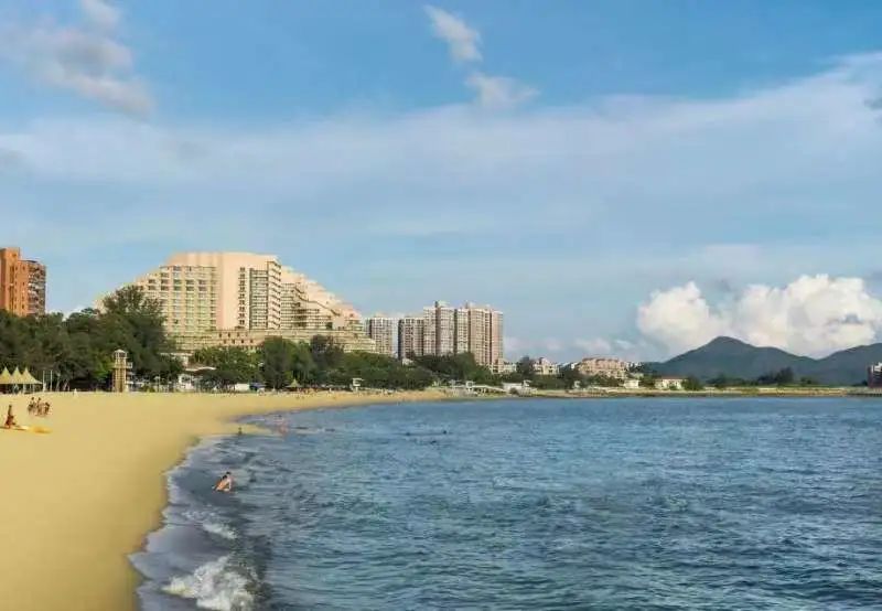 这里水清沙细,据说是地产商花费六千万从海南岛空运了柔软的细沙过来。