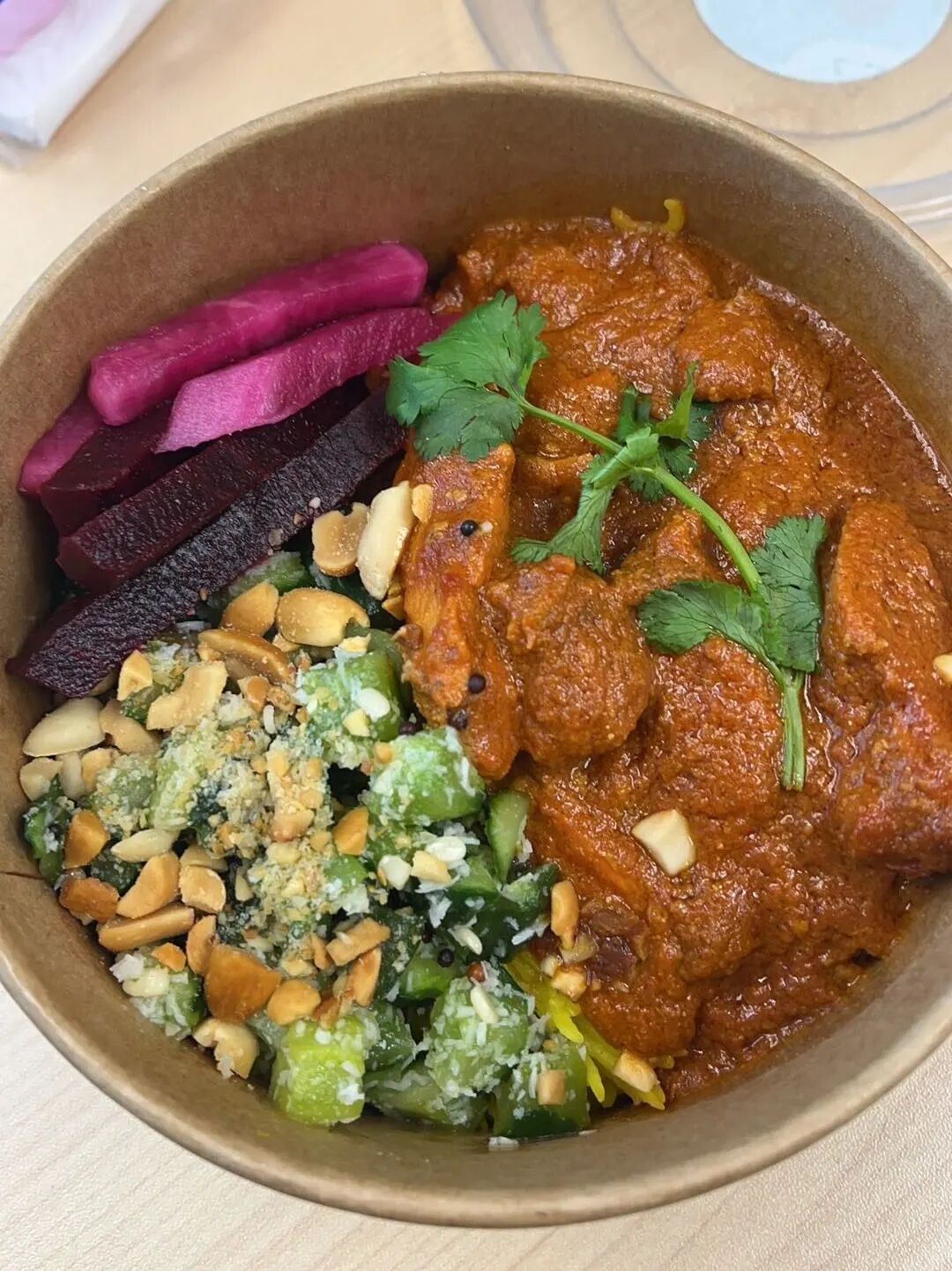 黄色的分辨不出形状的土豆豌豆鹰嘴豆组合,看起来没什么食欲的咖喱鸡,齁甜的芒果lassi。