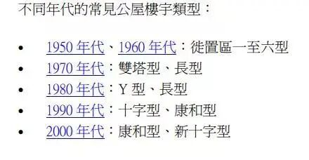 公屋的落成有悠久的历史。不同时期的建筑风格也不尽相同:
