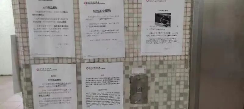 “严禁高空掷物”的提示,一有投诉就贴,常年可以挂好几张。