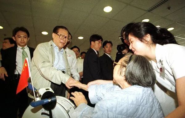 这次访港,江主席还去了沙田医院,跟病人握手交流: