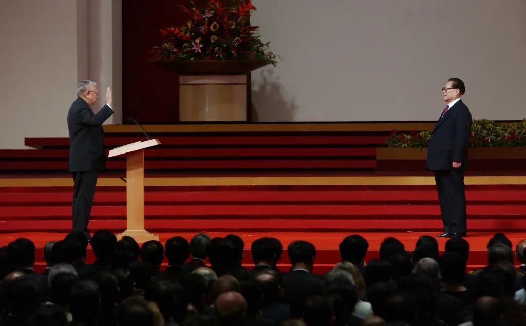 到了2002年,董建华先生连任特首,江主席第4次访港,出席香港特首就职仪式: