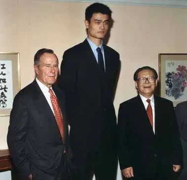 2002年,江主席访问美国,见到2米高的球星姚明,也曾用英文发出赞叹:“Marvellous!我跟你相差太远了,我一米七四。”