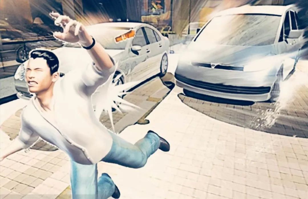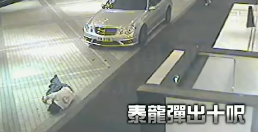这时后面突然冲过来一辆车,直接把李泰龙撞翻在地!