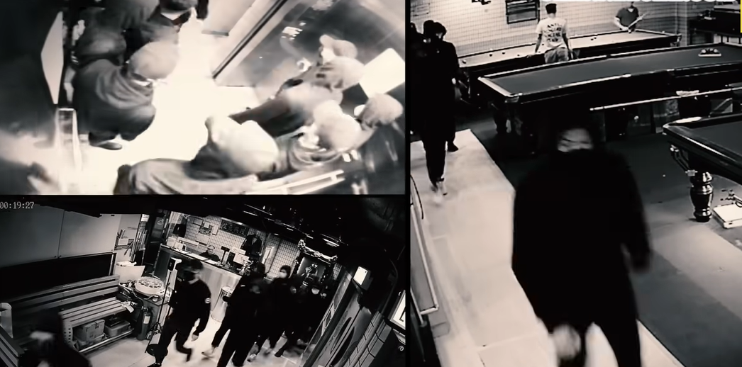 很快车上走下来几个拿刀的大汉,对着毫无还手之力的李泰龙一阵狂捅,短短30秒就连砍8刀!