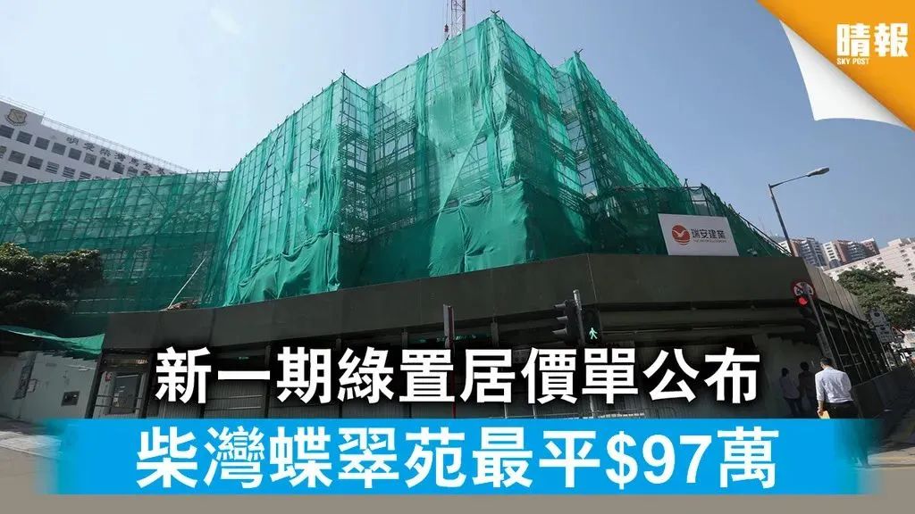 港岛有一个绿置居楼盘今年入伙,叫蝶翠苑,最便宜的一个单位只要97万,呎价5000多港币,但是面积也很小,只有187呎。
