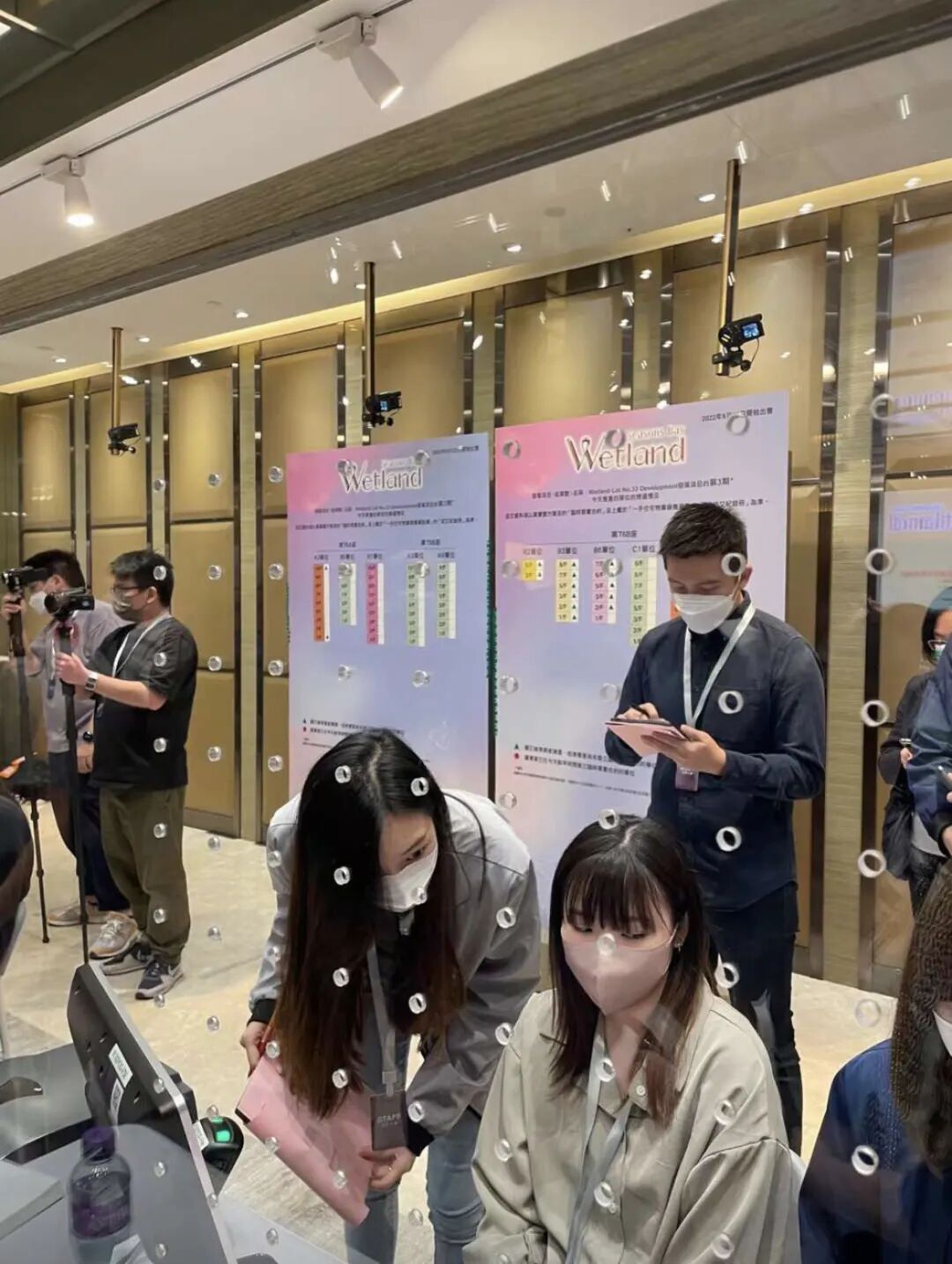 买房当天,现场早已人头涌涌、车水马龙。这次的气氛比启德Miami要热闹的多,也许是因为价钱比较低吧,有很多单身的上车一族、也有一些情侣和一些老人家都来凑凑热闹。