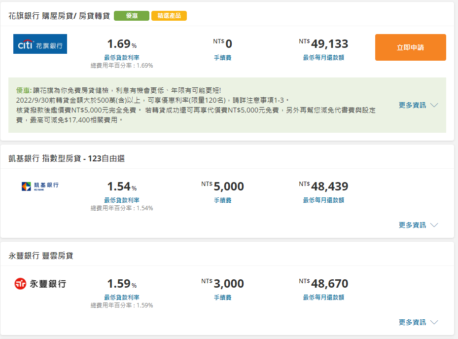 在台湾,想买新楼最高可以向银行贷8成,如果买二手楼会受到楼龄的影响,大概只能贷7成左右,还款期一般都是30年,利率大概是1.5%-1.7%。