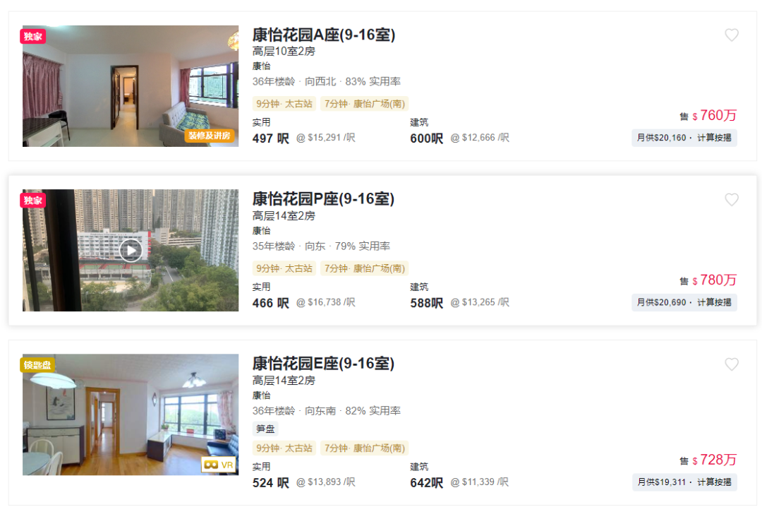 考虑性价比方面,太古城或者康怡花园都可以考虑(这些楼龄都在40年左右)。康怡花园更便宜一些,800万以内就能搞定。