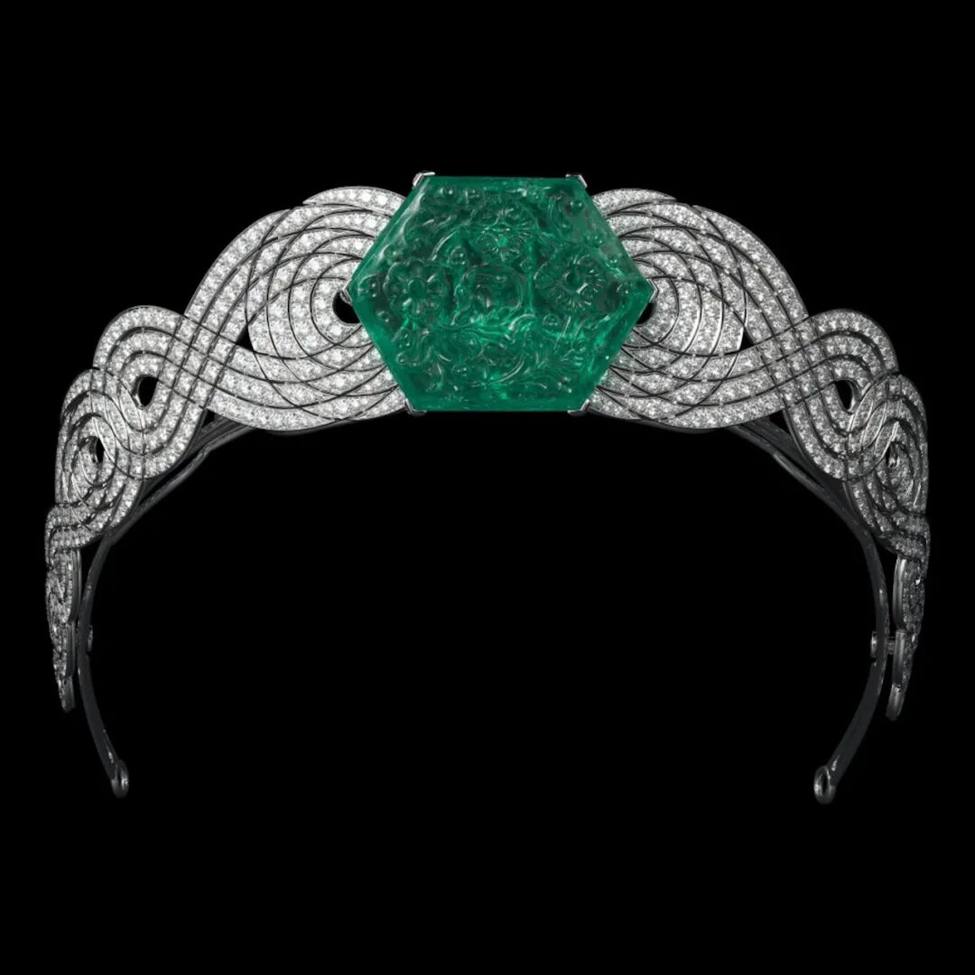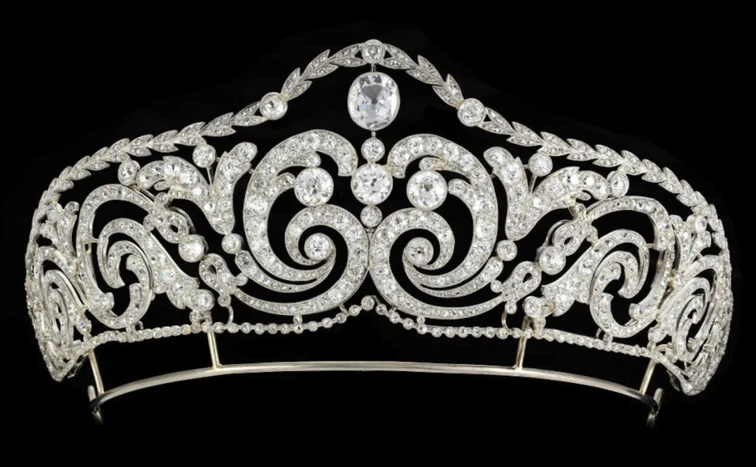 这顶王冠是卡地亚在2012年时制作的,2019年曾经在拍卖会上出现,被一位神秘买家以1217万人民币的高价拍下。