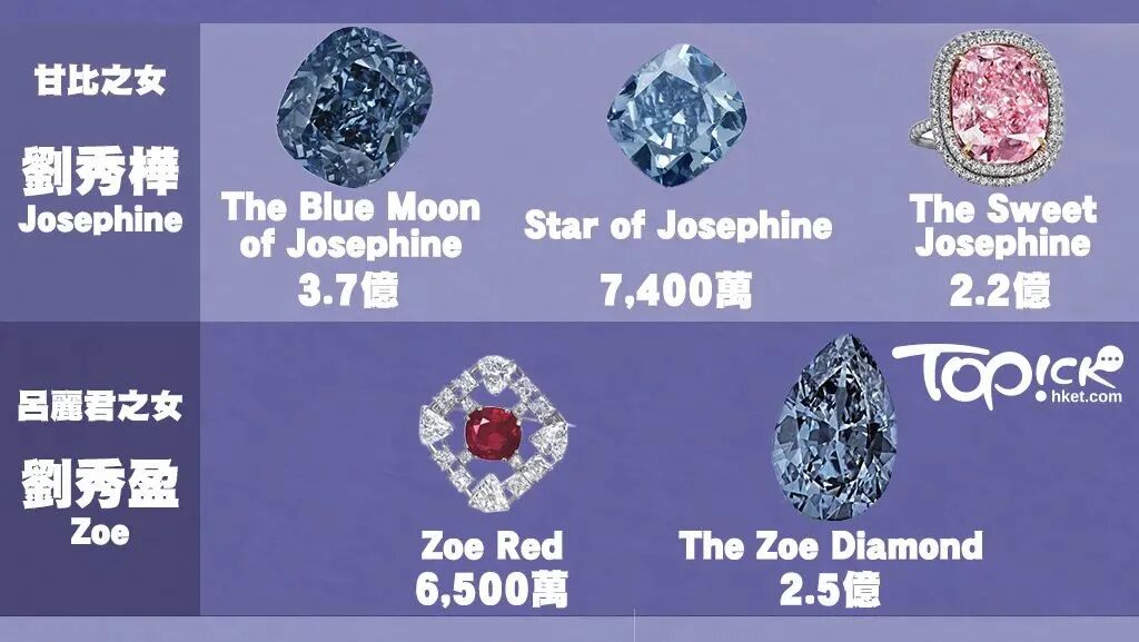 她刚出生没多久,大刘就买下价值7400万港币的一颗蓝钻送给女儿。