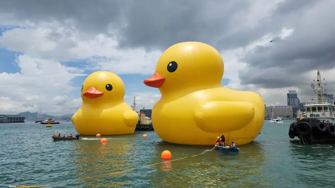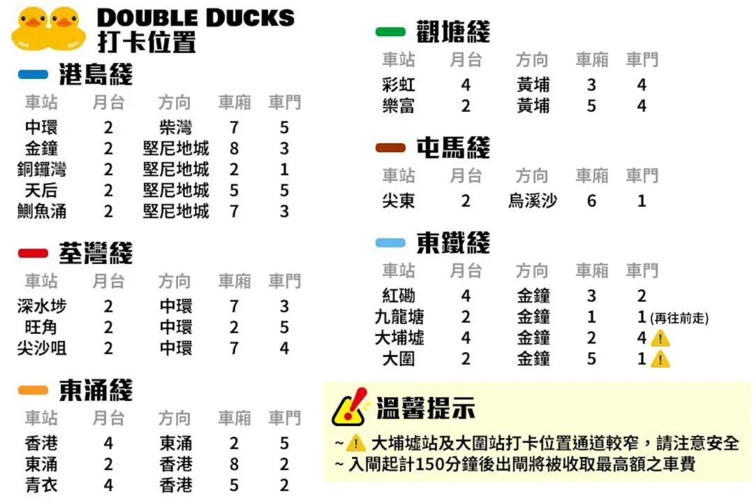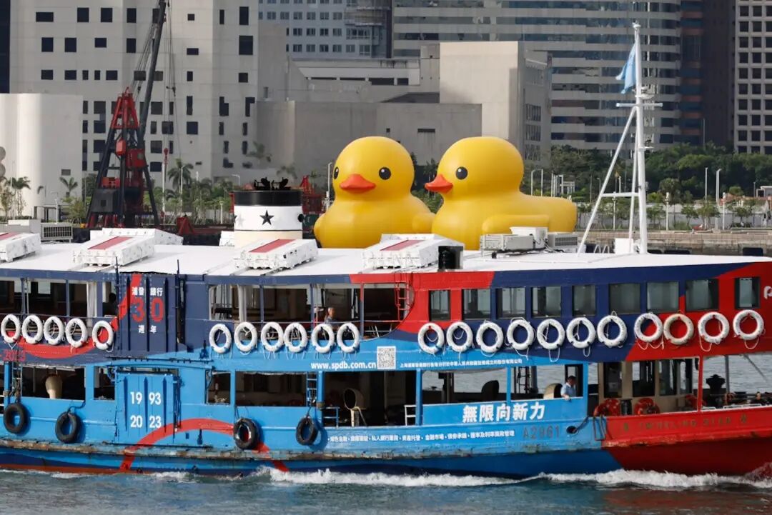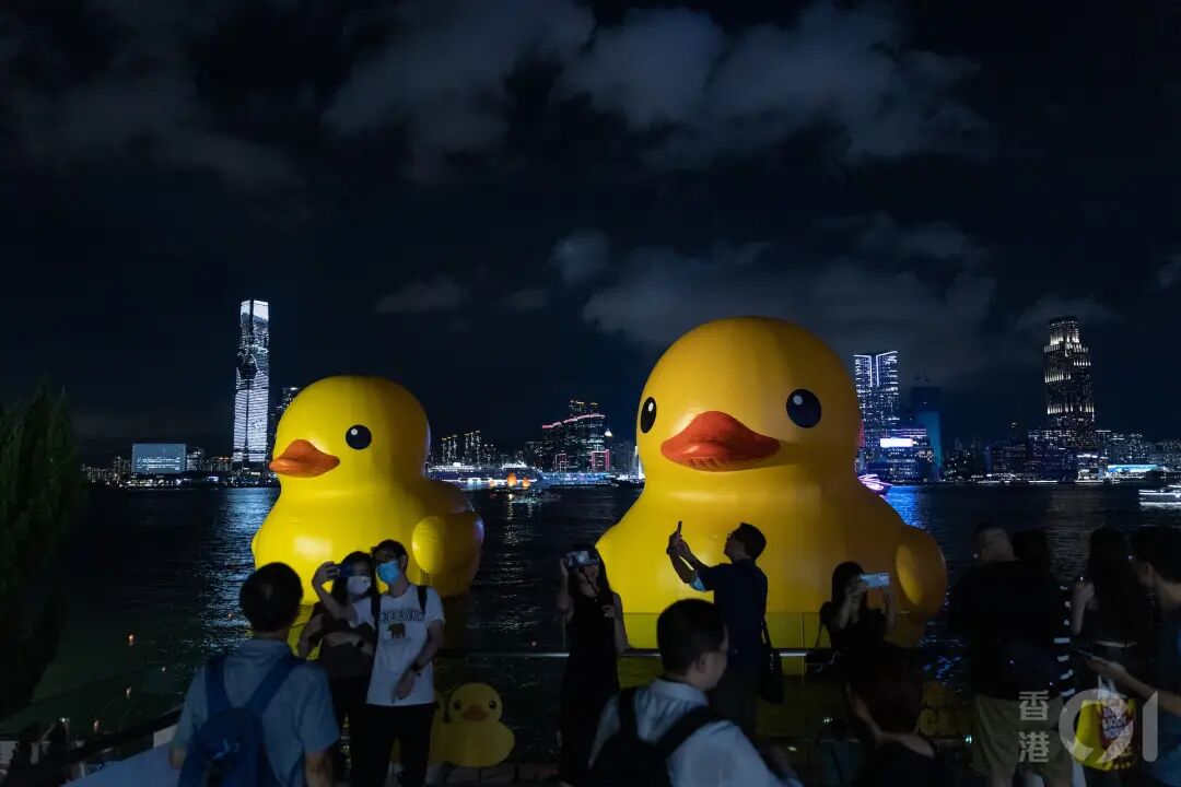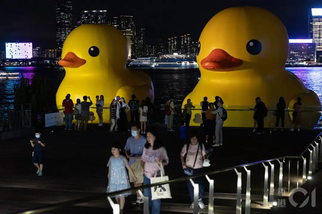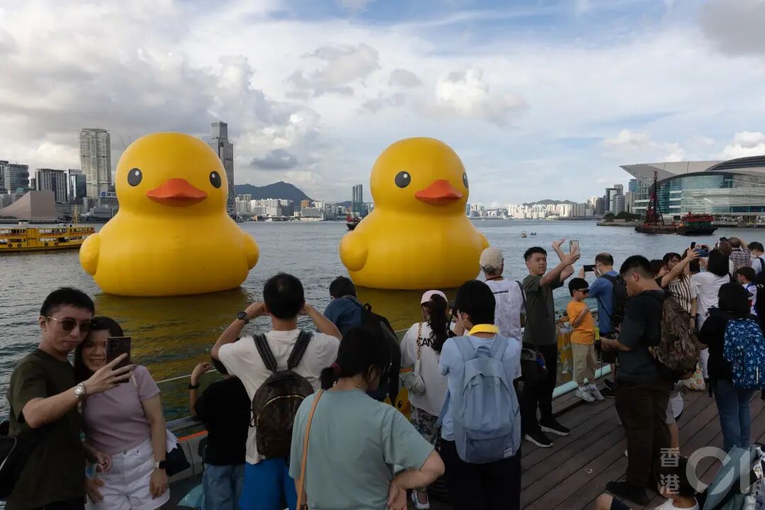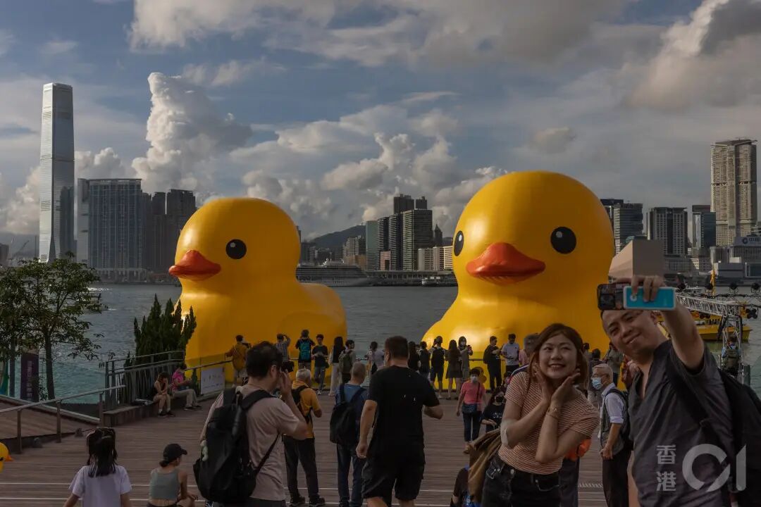 五十七万港漂都在这儿今天,几乎全香港的人都去了中环!好久都没这么热闹了!因为大黄鸭来了,还是两只!大黄鸭(图:HK01)不会有人还不知道大黄鸭是啥?就是十年前在维港展出,引起全城围观的大黄鸭!大家争相拍照(图:明报)当时大黄鸭是在尖沙咀码头,就是海港城旁边。今年换成了中环一带,添马公园及中西区海滨长廊附近:10年后重返香港,场面可不输10年前,毕竟是真正的顶流,正式展出之前已经有人开始疯狂打卡,一举一动都备受关注!悄悄抵港的大黄鸭5月25日,有网友发现青衣的海面上出现了两只大黄鸭!新来的两只大黄鸭(图:HK01)大黄鸭重返香港的消息飞速在香港传开!大黄鸭成双成对,畅游青衣的图片在网上疯传。网友分享(图:小红书)不少明星也发了合照,欢迎大黄鸭!网友分享(图:am730)6月8日晚上,两只大黄鸭偷偷在维港入水:两只大黄鸭(图:HK01)结果立刻吸引了不少市民围观。刚刚充好气的大黄鸭(图:HK01)刚刚充好气的大黄鸭(图:FB)昨天一早,两只大黄鸭在会展西面热身:大黄鸭(图:HK01)别说,还挺可爱的:大黄鸭(图:HK01)要相亲相爱鸭!大黄鸭(图:网络)虽说是工作日,市民已经迫不及待的开始打卡了:大黄鸭(图:HK01)昨天晚上就更热闹了!大黄鸭(图:HK01)这回两只大黄鸭预计在香港展出两周,还要在香港过个父亲节。6月18日父亲节,两只大黄鸭会从现在展出的位置,游去铜锣湾,然后经过尖沙咀再游回中环,总之就是环绕维港一圈。大黄鸭(图:HK01)为了欢迎这两只大黄鸭,香港人可是花式整活,什么小黄鸭T恤、小黄鸭地铁、小黄鸭叮叮车……感觉香港已经被小黄鸭攻陷了。满城皆是小黄鸭大黄鸭漂在海上,小黄鸭攻陷了香港18个地铁站!尤其是金钟站,一夜之间,到处都是小黄鸭。金钟站外面:金钟(图:gotrip)金钟站里面:金钟(图:gotrip)金钟(图:明报)月台:金钟(图:明报)月台旁边:金钟月台(图:明报)出站口的楼梯:金钟(图:明报)总之,现在金钟已经被小黄鸭包围了。除了金钟,小黄鸭还攻陷了其他地铁站月台,掀起了一阵打卡狂潮。(图:fb专页「黄色巨鸭Rubber Duck」)有网友贴心地找出了所有黄鸭的位置:(图:fb专页「黄色巨鸭Rubber Duck」)不只是港铁,还有叮叮车:叮叮车(图:gotrip)还有一大堆的小黄鸭周边:小黄鸭周边(图:gotrip)Double Duck,Double Luck,两只大黄鸭,双倍的快乐,虽然他们只是橡皮鸭,但他们给香港人带来了许多的欢乐。希望大家在努力生活的同时,还能不失童心,重心寻回那份简单的快乐。最后,来问问大家,你们会去看大黄鸭吗? 本文作者 天天被爸妈远程催婚的 @圈妹*图像影音来自网络,本文由港漂圈原创,转载请联系港漂圈公众号(ID:gangpiaoquan)参考资料:1.《短片:金钟站黄鸭处处短片看四大亮点(18:55)》,明报,2023-6-22.《黄鸭香港2023|巨型黄鸭维港展期!金钟+18个港铁站打卡位置+网购纪念品》,gotrip,2023-06-93.《黄鸭香港2023|巨型双鸭维港游18港铁站打卡+独家纪念品(多相)》,香港01,2023-06-9把港漂圈设为星标,就不会错过推送啦