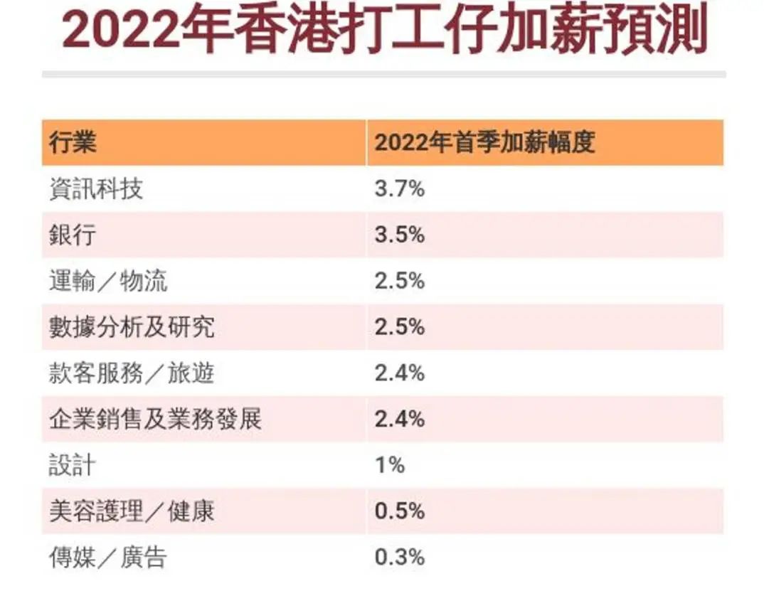 报告调查了香港的438家公司,调查显示:香港雇主整体预计今年平均会为打工人加薪1.7%,这是连续两年下跌后的首次回升!
