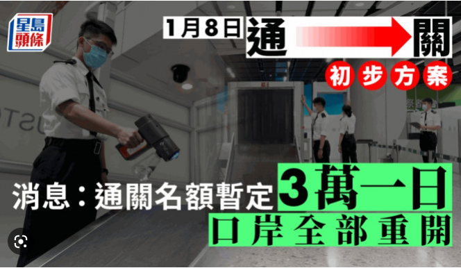 五十六万港漂都在这儿这周日(1月8日)就要通关了,大家激不激动?等了3年,眼看就要等到了,圈妹竟突然有种近乡情怯的感觉。虽说通关已进入5天倒计时,但具体方案还没出来,现在可是众说纷纭!就这两天,香港政务司司长陈国基发文说,要争取在1月8日开始通关,那些关闭已久的陆路口岸也将恢复开放。新闻报告(图:网络)这比之前特首说的1月15日,整整提前了一周。香港特首李家超先生(图:HK01)讲真的,大家最关心的肯定还是什么时候才能买港高铁票!重新出发,港高铁!早前港铁就已经透露了,今天高铁会进行试车。果不其然,这两天的西九龙格外热闹。有工程人员开着吊车,不知道在测试些什么。香港西九龙高铁站(图:有线新闻)票务大堂也终于有了售票员:香港西九龙高铁站(图:有线新闻)不知道灭了多久的显示屏重新亮了起来,上面还能看到一些票务信息。香港西九龙高铁站(图:有线新闻)还有站内的餐厅也在为重开做准备。香港西九龙高铁站(图:有线新闻)已经等不及的市民,今天还跑去了西九龙高铁站买票。香港西九龙高铁站(图:有线新闻)不过高铁票还没开始开卖!但圈妹发现,港铁网站上已经更新了2023年1月的票务信息。港铁官网之前港铁曾经透漏过,通车前3天会开始卖票。但根据下午最新消息,通关初期可能不会有高铁,想买票可能还要等一段时间。而且有议员透露,高铁会分三阶段恢复通车。在封关之前,高铁西九站连接58个内地站点,短途、长途全都有,最远的应该就是北京、天津一带。新闻报道(图:HK01)但通车初期,港铁应该只有短途车,就是福田、深圳北、光明城、虎门、庆盛、广州南等,班次也不多。第二阶段会到武汉、长沙等稍微远一点的城市。最后阶段才会恢复西九龙直达北京、上海等地的列车。新闻报道(图:有线)现在离过年只剩两周多了,估计是赶不及实现最后一阶段,所以远一点的小伙伴还是早点买机票吧。大家也可以先去深圳,然后再搭飞机或者高铁离开。毕竟这么多陆路口岸都要开放了。飞机、高铁不限额大家还记得香港都有几个口岸,连接内地吗?深圳湾、福田、罗湖、皇岗……其中深圳湾是一直都在开放,而福田、罗湖、皇岗已经关闭快3年了。根据现在的风声,通关首阶段应该会重开福田口岸、文锦渡口岸、香园围口岸,初期可能不会通罗湖口岸。罗湖口岸(图:维基百科)而且港铁车长已经开始熟悉罗湖和福田的路线了,估计罗湖也快了。还有皇岗口岸,重开皇岗口岸需要跨境巴士的配合,现在香港大概有200辆跨境巴士,100-200名跨境司机,也足够应付通关初期的需求了。皇岗口岸(图:维基百科)说到这里,又涉及到了一个大家最关心的问题:配额多少?之前,特首李家超先生也说了,通关初期会设置配额,毕竟一大群人全部涌往口岸,只会带来混乱。那么到底配额是多少?飞机、高铁算不算在内?香港特首李家超先生(图:无线)流传最广的一种说法就是每日名额3万,这3万个名额只分配给陆路口岸,其中深圳湾是1万个,而且有可能只限香港居民。但据圈妹今天听到的消息,通关名额可能并不只3万,但应该是在5万以下,并且会是按照先到先得的形式分配。看来又要开抢了!不过大家别急,最快明天,港府就会开记者会公布最终方案。新闻报道(图:星岛日报)至于飞机、高铁、金巴还有船,这些就不算在3万里面了,每天卖多少票,就看他们的运输能力了。所以想买机票的朋友,直接放心大胆的飞吧!而且国泰已经非常高调的在微博上官宣:1月8日起开始增加航班!机场(图:星岛日报)香港至北京的航班将由每周3班增至每周10班,北京至香港的由每周7班增至每周10班;香港至上海从每周2班增至每周14-16班,也就是每天都有2-3班;而且还会恢复香港往来广州的航班。1月14日,国泰还会增加香港至厦门的航班。国泰微博(图:网络)已经3年没通关了,大家还记得过关要准备什么吗?通关前,快准备好这些!第一个就是核酸检测报告!现在要求应该是出发48小时内的核酸检测报告,注意一定要纸质版的,电子版报告和短信都不可以。社区核酸检测中心(图:网络)而且必须是核酸检测,快测也不行。香港各个社区都有核酸检测中心,可以出纸质版报告,而且还有加急服务。12小时内出报告的检测费用不超过240港币,24小时内出报告的不超过150港币。社区核酸检测收费要求(图:HK01)除了核酸检测外,还需要准备好的就是证件。香港永久居民需要准备好身份证+回乡证。顺便提一嘴,回乡证过期的赶紧去网上预约补办吧!办证一般需要12个工作日,加急的话可以变成5个工作日。但近期网上预约办证的名额好像已经满了,再拖就更来不及了。办理回乡证现场(图:东网)要是香港非永久居民要回内地,需要准备好港澳通行证+签注+香港、内地的身份证。第三样就是票!机票、高铁票、船票、巴士票……走陆路口岸的话,不用买票,但是要看政府如何分配名额。还有5天就是通关的日子,想必这两天就会官宣通关安排了,大家可以时刻留意我们的推送。另外,提醒一些小伙伴,想买机票赶紧买,越往后估计就会越贵了。 本文作者 天天被爸妈远程催婚的 @圈妹*图像影音来自网络,本文由圈妹与超帅原创,转载请联系圈妹与超帅公众号(ID:quanmeihk)参考资料:1.《通关|国泰宣布1.8起增香港至京沪厦门航班恢复往广州客运航班》,星岛环球网,2022-12-312.《政府争取周日通关有市民到高铁西九龙站查询票务安排》,香港电台,2022-1-