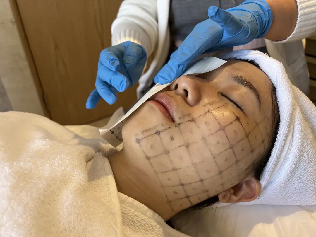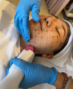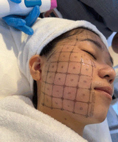 一般做之前,医生会先在客人脸上贴好格子,再涂上冷凝胶,然后才用探头进行治疗。