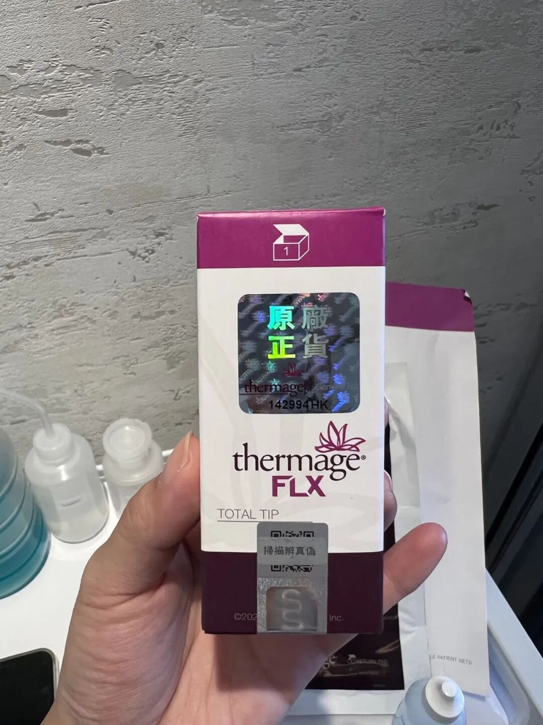 不仅拥有一系列Thermage FLX 证书、Thermage FLX 正厂标签,而且做完把治疗头带走,相信没几家能做到。这样公开透明,也是一种自信的表现!