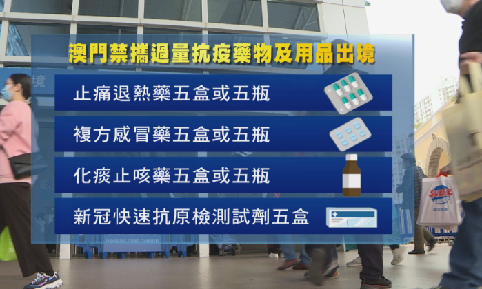 止痛药可以带过关,但必须是合理自用范围(图:星岛日报)最近澳门政府突然宣布,任何人离开澳门时,可以携带止痛退热药、复方感冒药、化痰止咳药、新冠快速抗原检测试剂这4种抗疫药物和产品,但每样都不能超过5盒。而且澳门还出了限购政策,每人每次限购5盒快测,1盒止痛退烧药物。昨天港府开记者会时提到,公立医院的药物非常充足,暂时还不用限购,但不排除将来会立法限购。