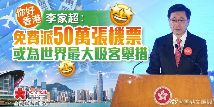香港会先拿出50万张机票送给游客,之后还会再给港人、大湾区旅客,各送8万张票,所以一共会送出将近70万张免费机票!