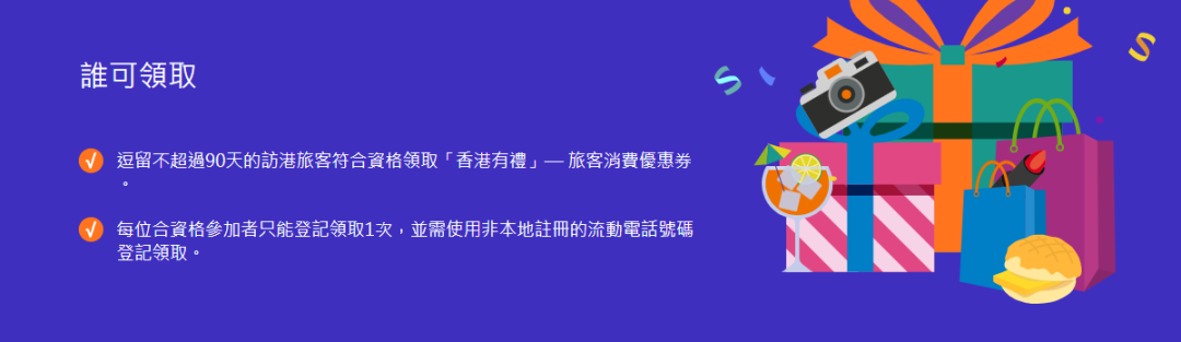 2.必须使用非香港本地注册的流动电话号码登记,每个人只能登记领取1次。