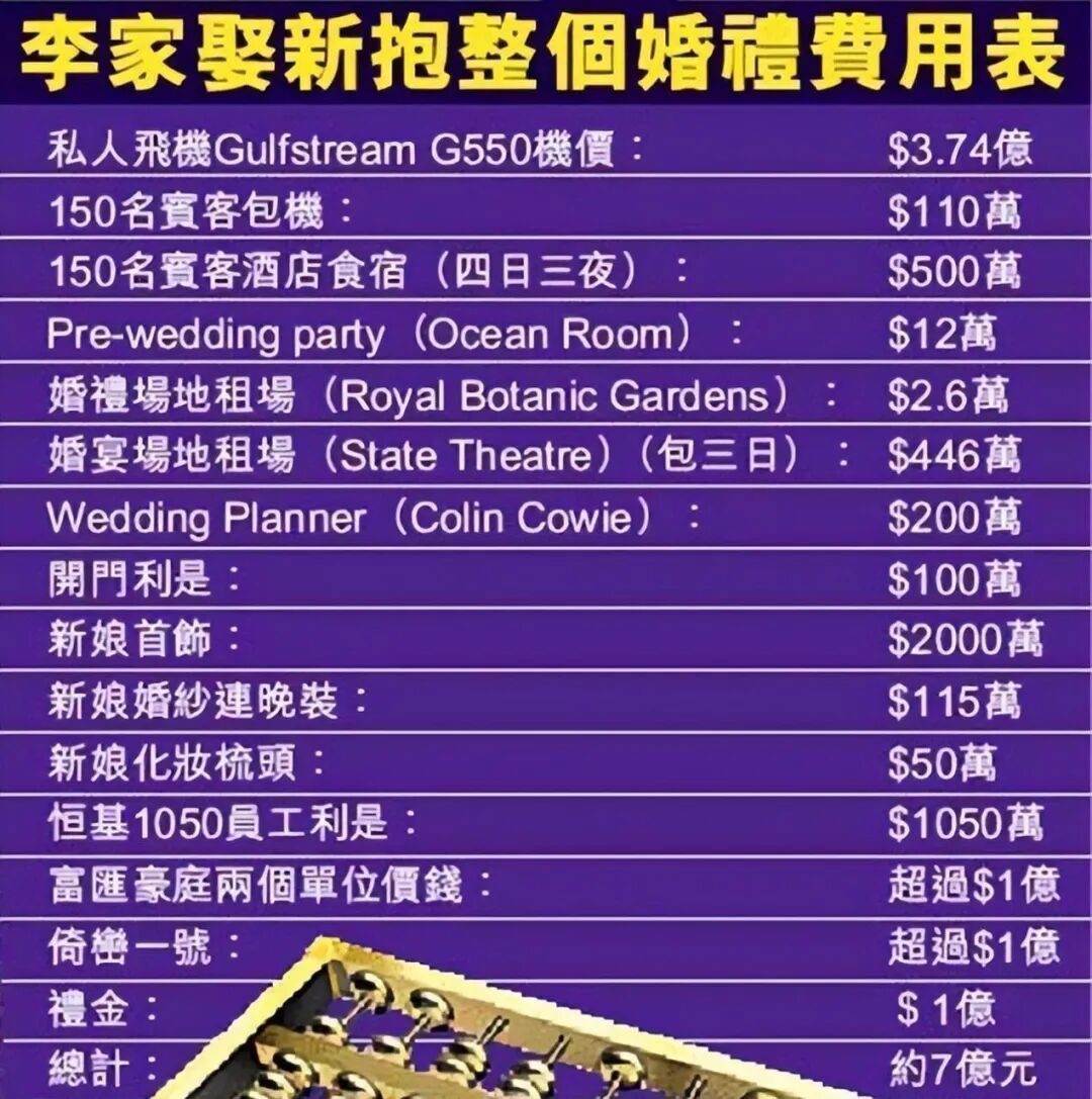 当然,除了这两家大家熟知的,香港还有一位豪门世家,结婚的时候跟徐子淇一样,也花了7亿!