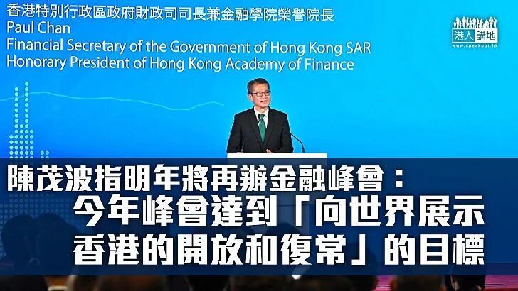 香港财政司司长陈茂波在金融峰会上也指出,今年的金融峰会达到了“向世界展示香港的开放和复常”的目标 ,明年将会再举办金融峰会。