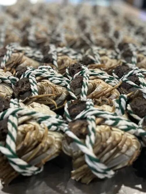 而熟醉蟹却不同,是蒸熟后再醉卤,先把蟹蒸熟,用醉卤腌制36小时用绍兴花雕黄酒浸润其身,去其腥,提其鲜,解其寒,再用茅台吊出它的香气。避免了生食螃蟹带来的肠胃负担。