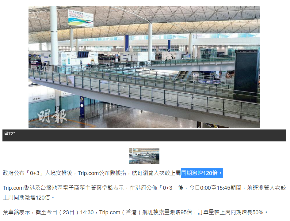 早在两个月前,香港开始实施入境“0+3”检疫安排当天,去日本的机票搜索量就暴增了120倍。