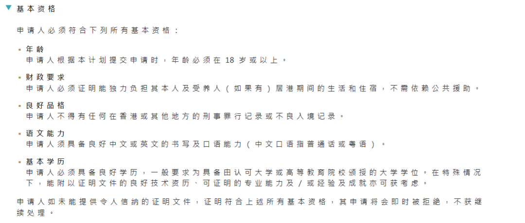划重点,在申请前不用先找工作,只要符合以下条件即可申请获准在港逗留2年而不受其他逗留条件限制。
