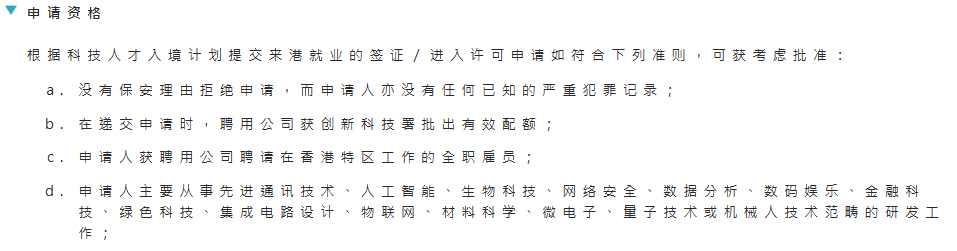 合资格的香港公司须先申请配额,才能为你申请签证,而你须持有科学、科技、工程或数学(STEM)学科学位。更多要求如下图!