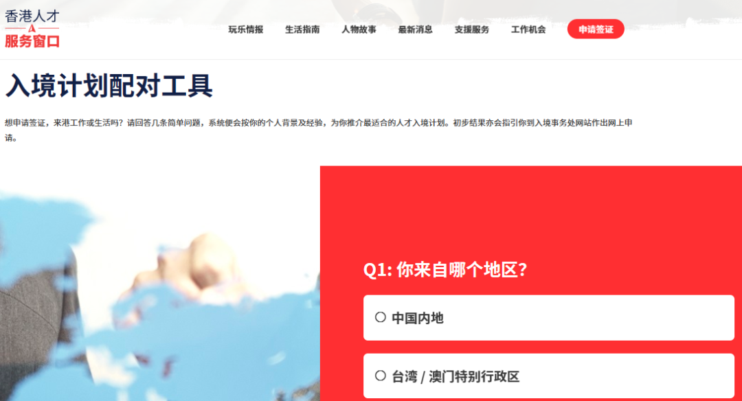 可以通过「人才服务窗口」线上平台的「入境计划配对工具」测试,就可即时通过平台线上递交申请。