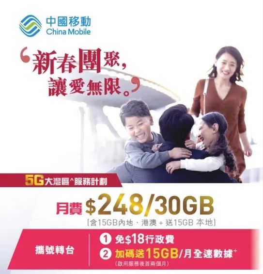 现在来中国移动香港公司新上台选用「5G大湾区^服务计划」,即可享每月内地、港澳共享流量,随时随地都可以使用到在香港常用的社交平台,更无需翻墙,穿梭两地都能尽情上网,还有三地其后无限流量任用(不超过384 Kbps),不用担心关键时刻流量会用完!