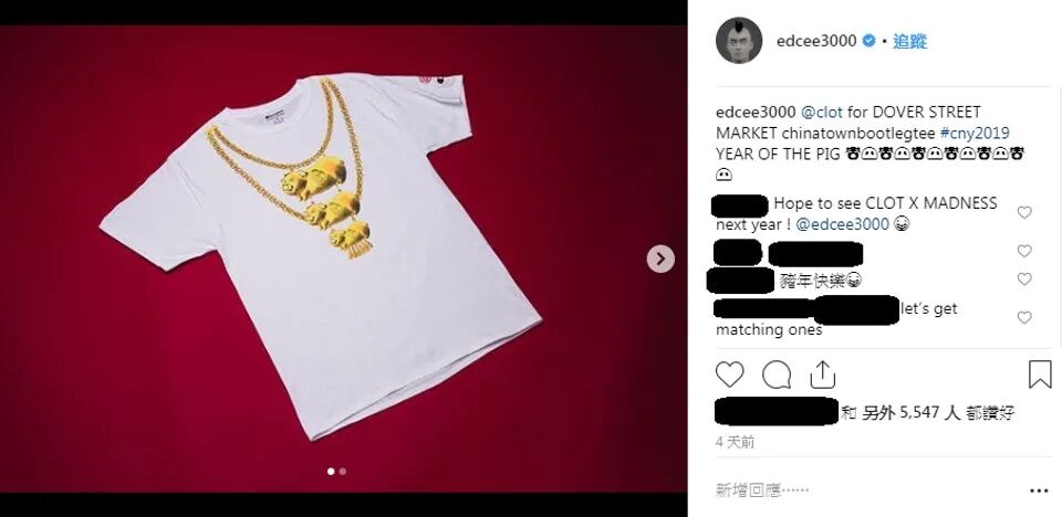 到了2019年,陈冠希发了一个自家潮牌CLOT的新品宣传,有网友看热闹不嫌事大的说:希望看到CLOT和MADNESS的联名。