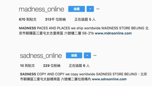 陈冠希参与的潮牌4PK,疑似搞了个账户对应余文乐的“MADNESS”,就叫“SADNESS”。