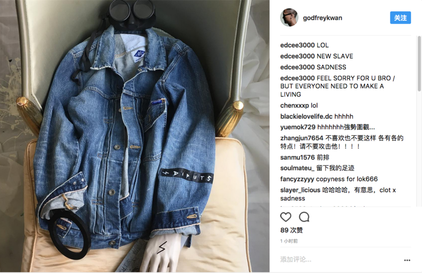 起因是一位余文乐的朋友,在网上po出一张余文乐所创潮牌“MADNESS”的牛仔服。