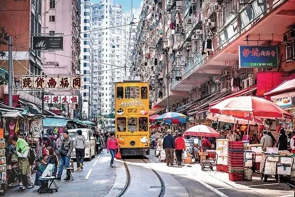 图中的春秧街,就在北角汇附近,在这里,档主的叫卖声、途人的议价声,加上电车的叮叮声、交织出全港独有的「天然交响乐」!