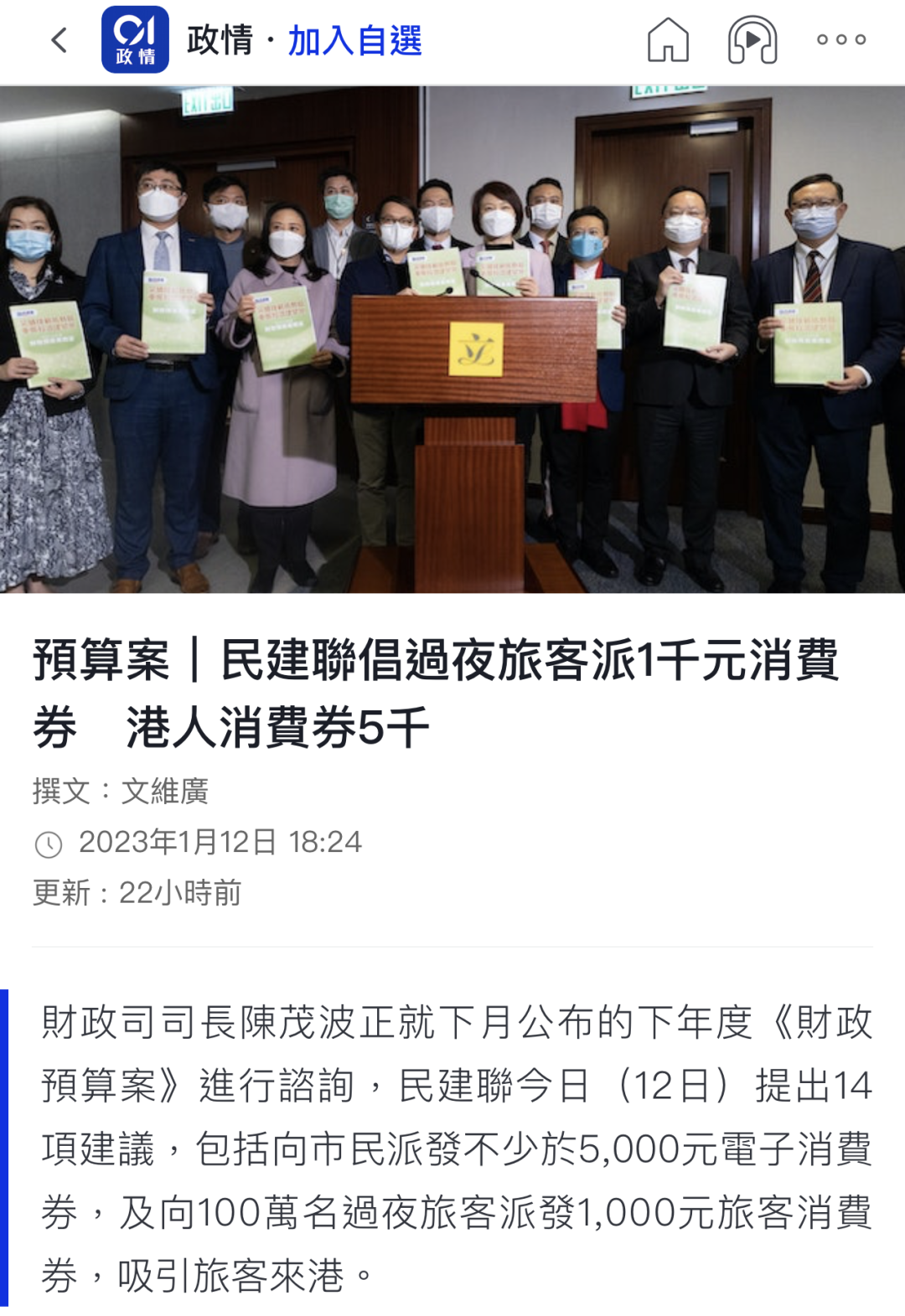 这些提议的议员说,去年香港的经济收缩,继续发消费券,可以吸引更多游客来香港,让游客也玩得开心,花得更多,还能提振香港的经济。