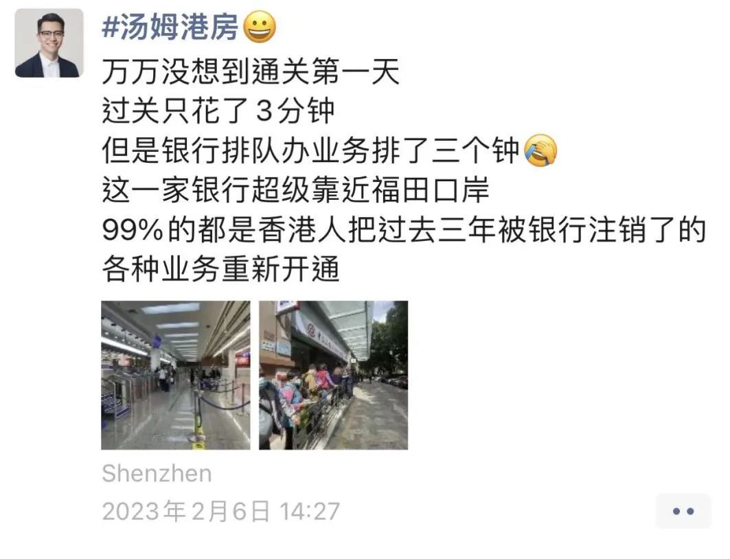 圈妹甚至还在朋友圈看到,口岸附近的银行大排长龙,大多数都是香港人回内地重启户口或办理其他业务。
