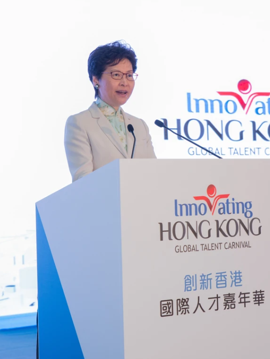 前香港特首林郑月娥女士、财政司司长陈茂波先生都曾经到过「创新香港-国际人才嘉年华」,主持开幕式,现场致辞!