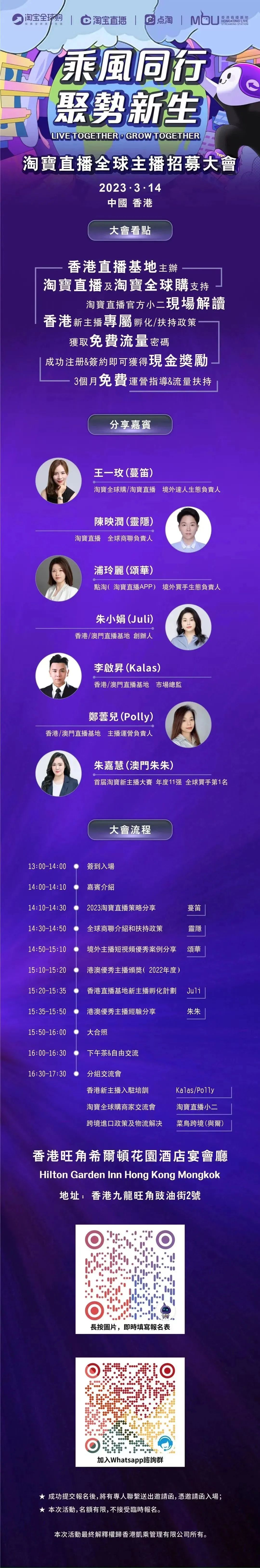 3月14日,2023年淘宝直播全球主播招募大会-中国香港站正式开启!